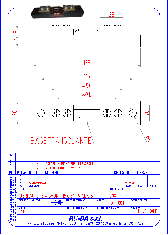 Shunt 15A 60mV RU-DA Italia RU-DA Italy high quality shunts. High quality production manganin shunts. Top quality shunts made in Italy. Shunt prodotti in Italia. Professional current shunt. Best quality low price- RU-DA Italia shunts derivatori di corrente nebenwiderstände RU-DA derivatori di corrente nebenwiderstände current shunt made in Italy