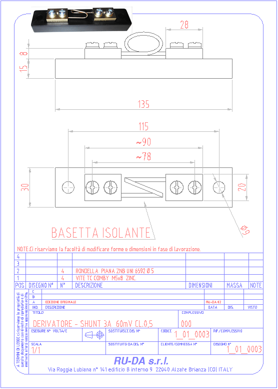 Shunt 3A 60mV RU-DA Italia RU-DA Italy high quality shunts. High quality production manganin shunts. Top quality shunts made in Italy. Shunt prodotti in Italia. Professional current shunt. Best quality low price- RU-DA Italia shunts derivatori di corrente nebenwiderstände RU-DA derivatori di corrente nebenwiderstände current shunt made in Italy
