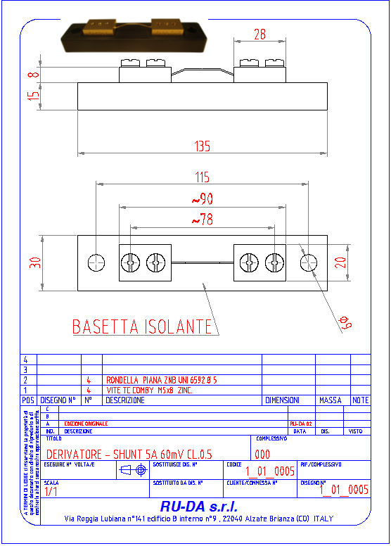 Shunt 5A 60mV RU-DA Italia RU-DA Italy high quality shunts. High quality production manganin shunts. Top quality shunts made in Italy. Shunt prodotti in Italia. Professional current shunt. Best quality low price- RU-DA Italia shunts derivatori di corrente nebenwiderstände RU-DA derivatori di corrente nebenwiderstände current shunt made in Italy