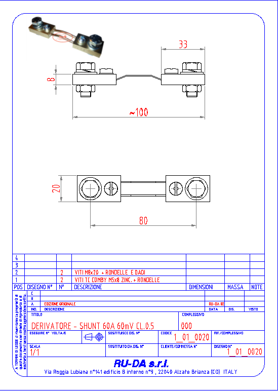 Shunt 60A 60mV RU-DA Italia RU-DA Italy high quality shunts. High quality production manganin shunts. Top quality shunts made in Italy. Shunt prodotti in Italia. Professional current shunt. Best quality low price- RU-DA Italia shunts derivatori di corrente nebenwiderstände RU-DA derivatori di corrente nebenwiderstände current shunt made in Italy
