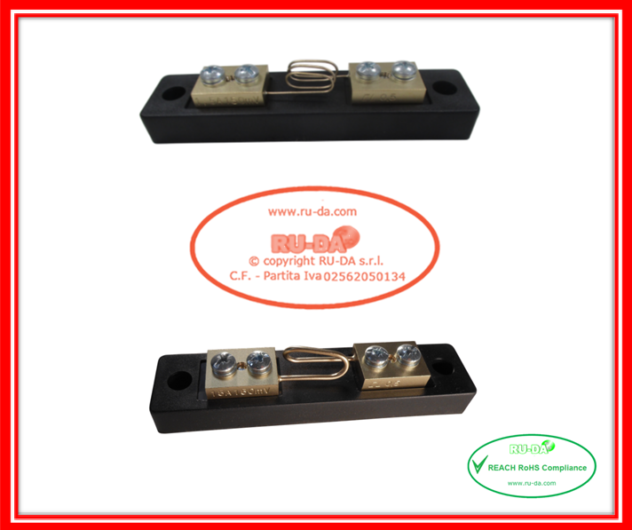 Shunt 0.5A 150mV - 25A 150mV DIN 43703 RU-DA Italy Shunts 0,5A - 25A 150mV DIN43703 RU-DA Italia shunts RU-DA Italia RU-DA Italy high quality shunts. High quality production manganin shunts. Top quality shunts made in Italy. Shunt prodotti in Italia. Professional current shunt. Best quality low price- RU-DA Italia shunts derivatori di corrente nebenwiderstände RU-DA derivatori di corrente nebenwiderstände current shunt made in Italy
