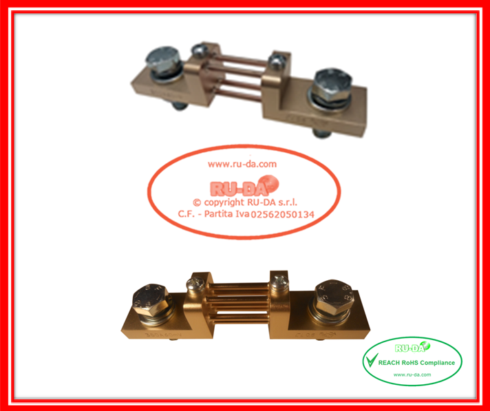 Shunt 200A 60mV - 350A 60mV DIN 43703 RU-DA Italy Shunt 200A - 350A 60mV DIN43703 RU-DA Italia shunts RU-DA Italia RU-DA Italy high quality shunts. High quality production manganin shunts. Top quality shunts made in Italy. Shunt prodotti in Italia. Professional current shunt. Best quality low price- RU-DA Italia shunts derivatori di corrente nebenwiderstände RU-DA derivatori di corrente nebenwiderstände current shunt made in Italy