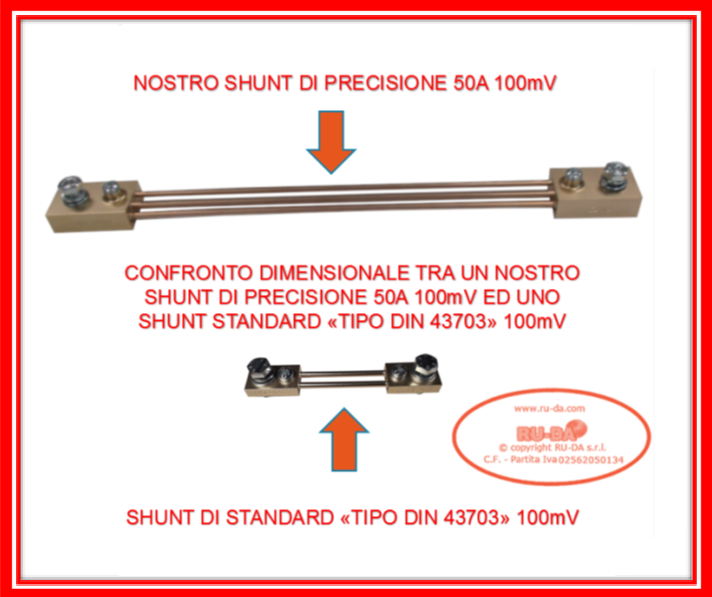 Spesso la nostra concorrenza utilizza standard o shunt DIN 43703 per fornirere uno shunt in classe 0,1 o 0,2.