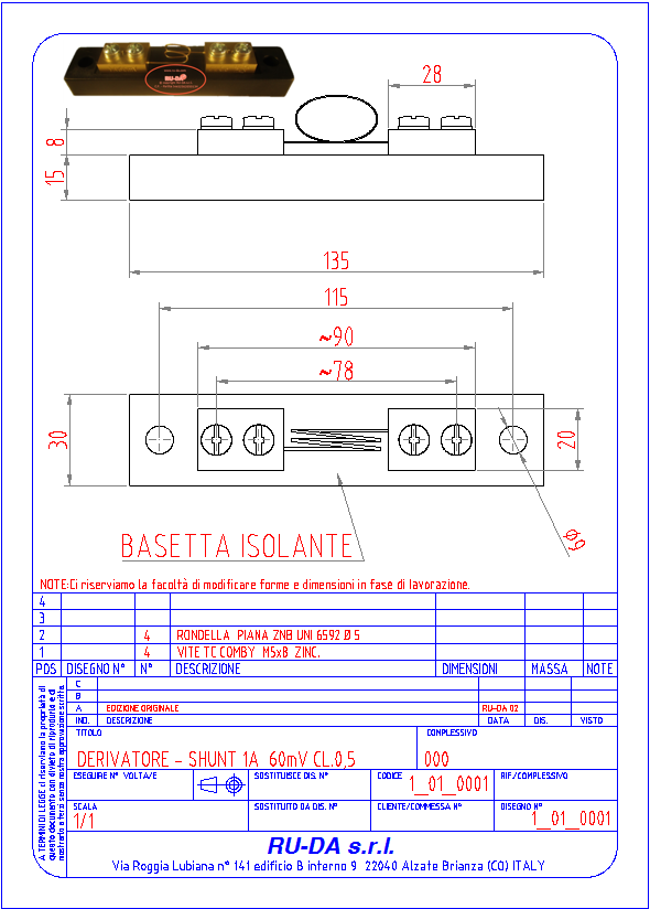 Shunt 1A 60mV RU-DA Italia RU-DA Italy high quality shunts. High quality production manganin shunts. Top quality shunts made in Italy. Shunt prodotti in Italia. Professional current shunt. Best quality low price- RU-DA Italia shunts derivatori di corrente nebenwiderstände RU-DA derivatori di corrente nebenwiderstände current shunt made in Italy