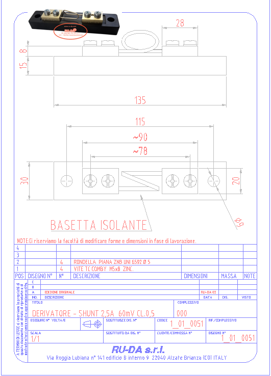 Shunt 2.5A 60mV RU-DA Italia RU-DA Italy high quality shunts. High quality production manganin shunts. Top quality shunts made in Italy. Shunt prodotti in Italia. Professional current shunt. Best quality low price- RU-DA Italia shunts derivatori di corrente nebenwiderstände RU-DA derivatori di corrente nebenwiderstände current shunt made in Italy