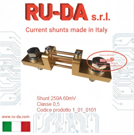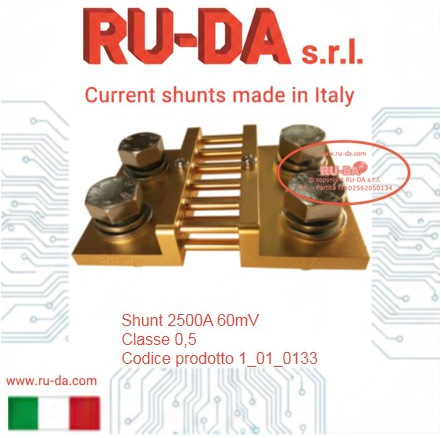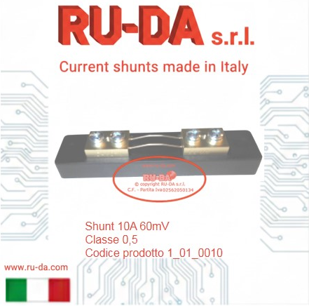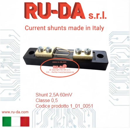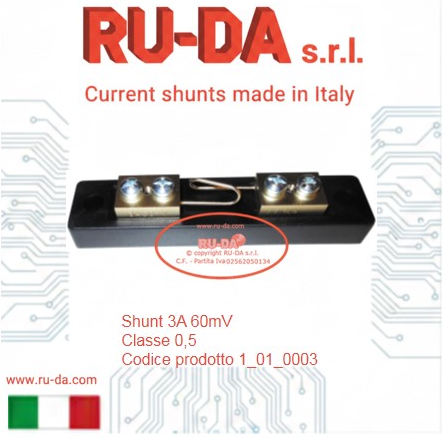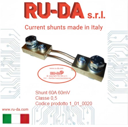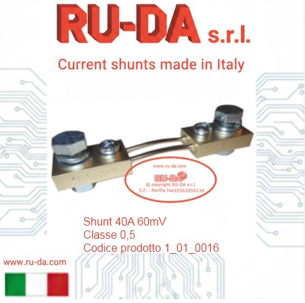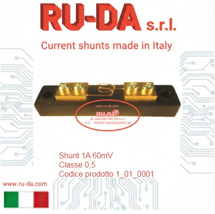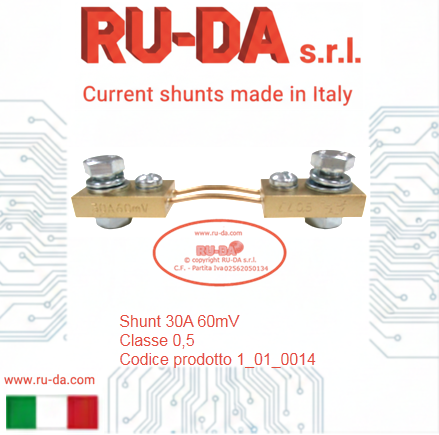 Shunt 30A 60mV RU-DA Italia RU-DA Italy high quality shunts. High quality production manganin shunts. Top quality shunts made in Italy. Shunt prodotti in Italia. Professional current shunt. Best quality low price- RU-DA Italia shunts derivatori di corrente nebenwiderstände RU-DA derivatori di corrente nebenwiderstände current shunt made in Italy