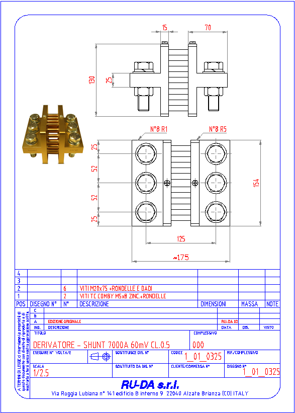 Tutti i nostri shunts sono Conformi normative REACH RoHS SHUNT MADE IN ITALY DIN 43703 - Classe 0,5 Classe 0.5 Derivatore di corrente Nebenwiderstand derivador derivateur Shunt 50mV 60mV 75mV 80mV 100mV 120mV150mV 200mV 250mV 300mV DIN43703 RU-DA produzione e vendita shunt in Italia RU-DA Shunt italiani conforme alle normative REACH e RoHS
