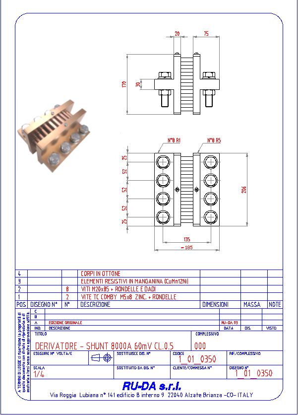 Shunt 8000A 60mV RU-DA Italia RU-DA Italy high quality shunts. High quality production manganin shunts. Top quality shunts made in Italy. Shunt prodotti in Italia. Professional current shunt. Best quality low price- RU-DA Italia shunts derivatori di corrente nebenwiderstände RU-DA derivatori di corrente nebenwiderstände current shunt made in Italy